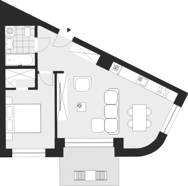 - Charakterystyka mieszkania: 49,13 m², 2 pokoje, 1 łazienka; stan: deweloperski