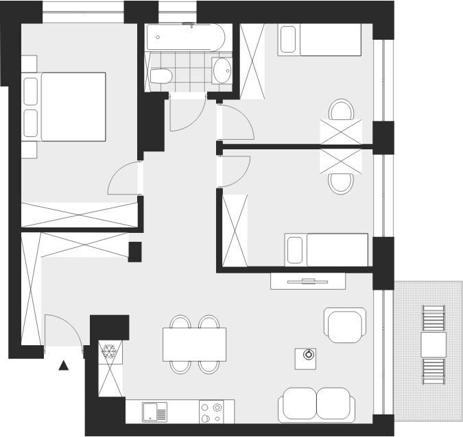 - Charakterystyka mieszkania: 71,76 m², 4 pokoje, 1 łazienka; stan: deweloperski